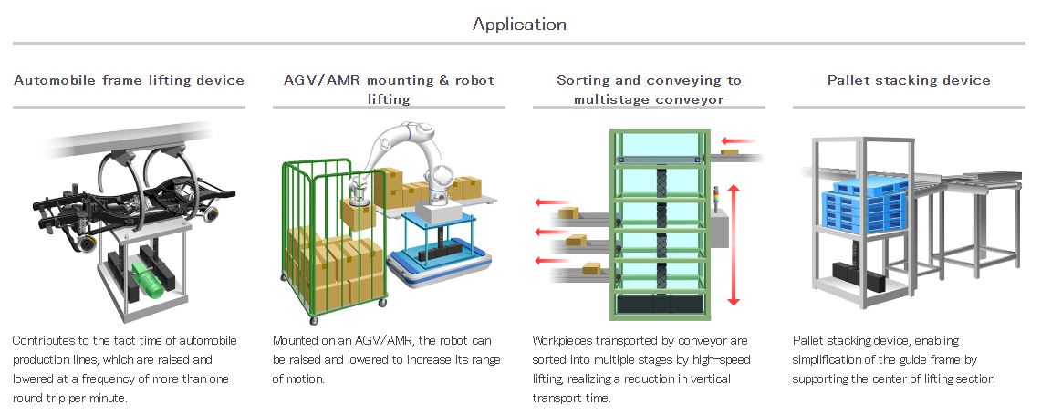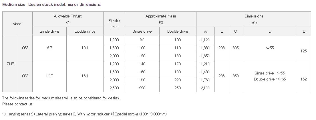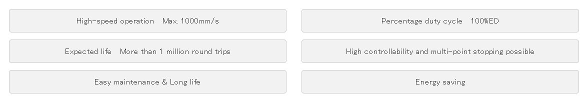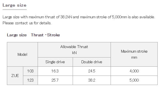 The range of thrust is expanded to "38.2kN" and stroke to "5000 mm". Furthermore, high-speed/high-frequency operation with