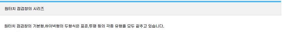 ¿øÅÍÄ¡ Á¡°ËâÀº ±âº»Çü ÇÏÀ̳ØÇüÀÇ 2Çü½Ä °¢°¢¿¡ Ç¥ÁØ¡¤Åõ¸í âÀÚ ¾Ð·Â¡¤ÇÁ·£Áö¡¤±×¹°ÀÚ µî °¢Á¾ ŸÀÔÀ» °®Ãß°í ÀÖ½À´Ï´Ù.